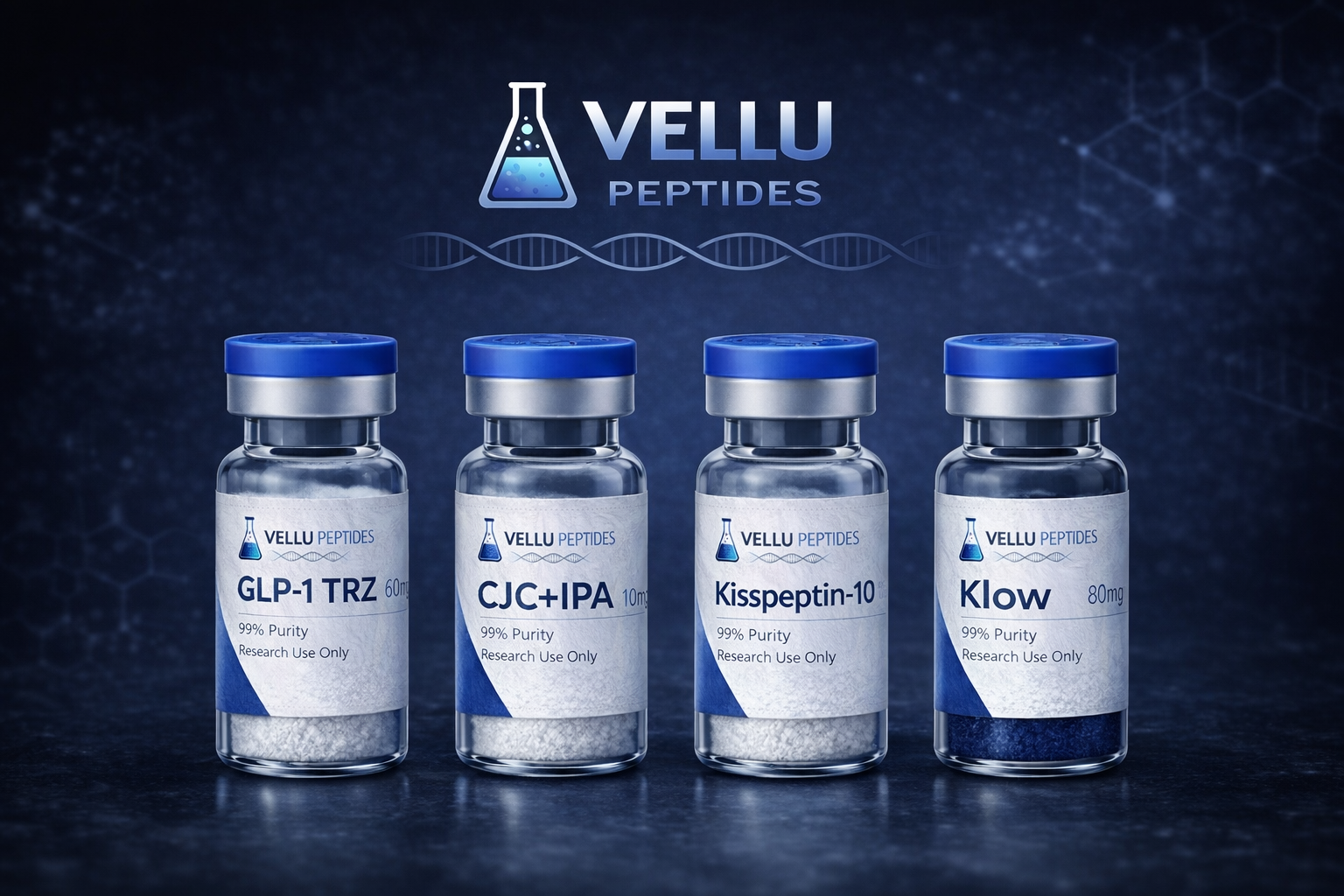 Vellu Peptides products are intended strictly for research use only. They are not intended for human or animal consumption and are not approved for medical, diagnostic, therapeutic, or veterinary use. No instructions for preparation, administration, or dosage are provided.